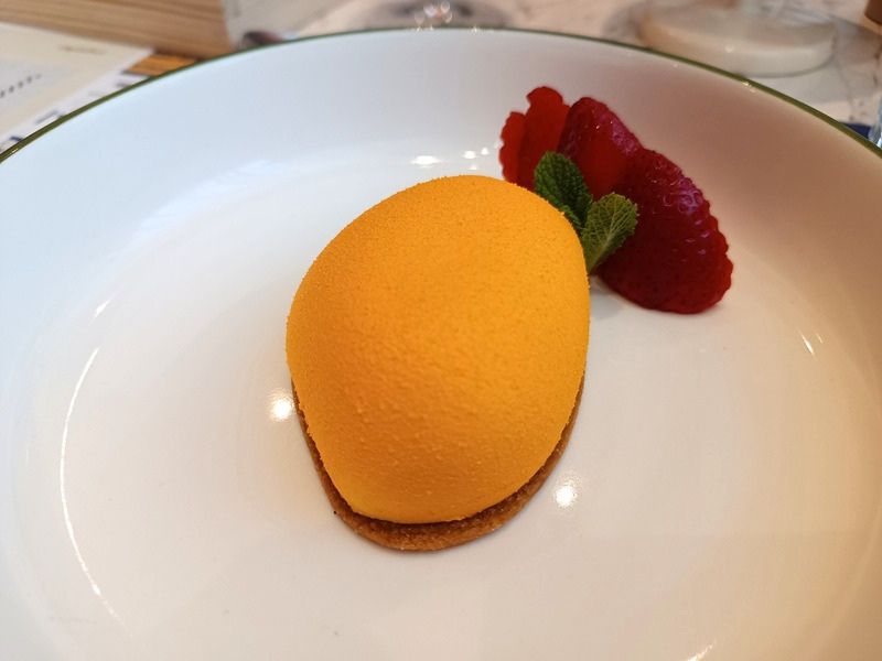 Najbardziej zapadającym w pamięć elementem festiwalowego menu okazał się deser - mus cytrynowy z białą czekoladą i sablé, który dzięki lekkości i świeżości był najlepszym zwieńczeniem całego doświadczenia.
